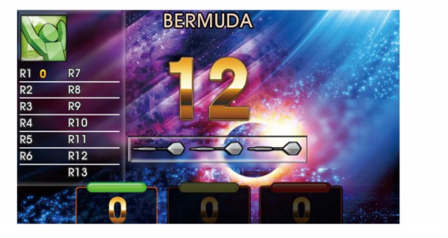 ⑧顯示當前一輪玩家可投擲的飛鏢數(shù), 未投擲過的飛鏢以圖案表示, 己投擲的飛鏢以所得分數(shù)或MISS表示