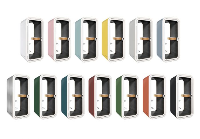 廣州浩田數碼科技有限公司設計和制作具有隔音效果的室內“電話亭”。除了單人的小亭子之外,他們還推出了最多可容納 4 人的“會議室”。),每款皆能依喜好選擇自己喜歡的色彩,在北歐極簡風格的設計之下,繽紛的色彩也為辦公注入額外的繽紛活力。除了提供多功能的工作用途之外,內部還有可放置筆記型計算機的木制桌椅,更能隨心組裝需要的家具。