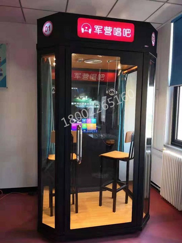 共享自助唱歌機,軍營戰友娛樂唱吧亭,練歌房迷你KTV廠家定制。軍營唱吧圍繞部隊思想、政治教育展開,將思想性、娛樂性、藝術性融為一體,把娛樂向教育滲透,展現了軍隊文化器材的獨特魅力。